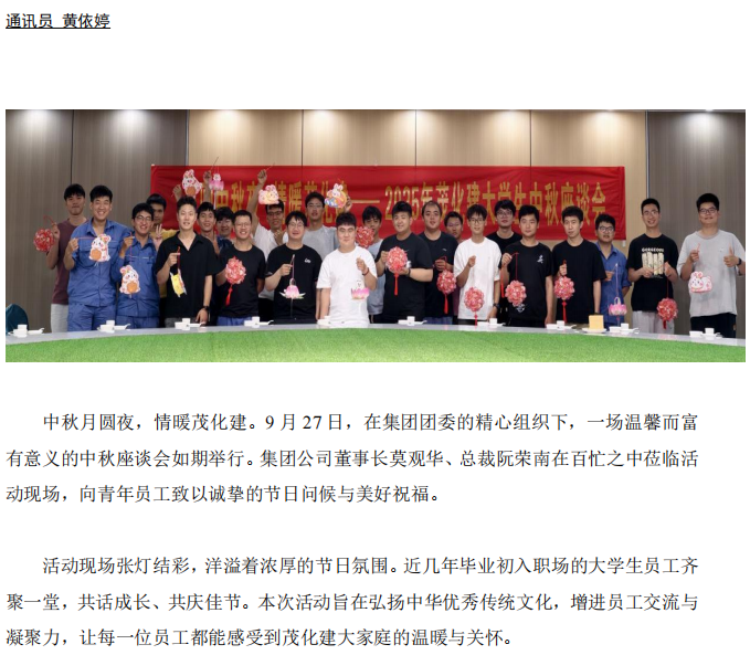 月圆中秋夜 情暖茂化建——2025 年集团大学生中秋座谈会圆满举行