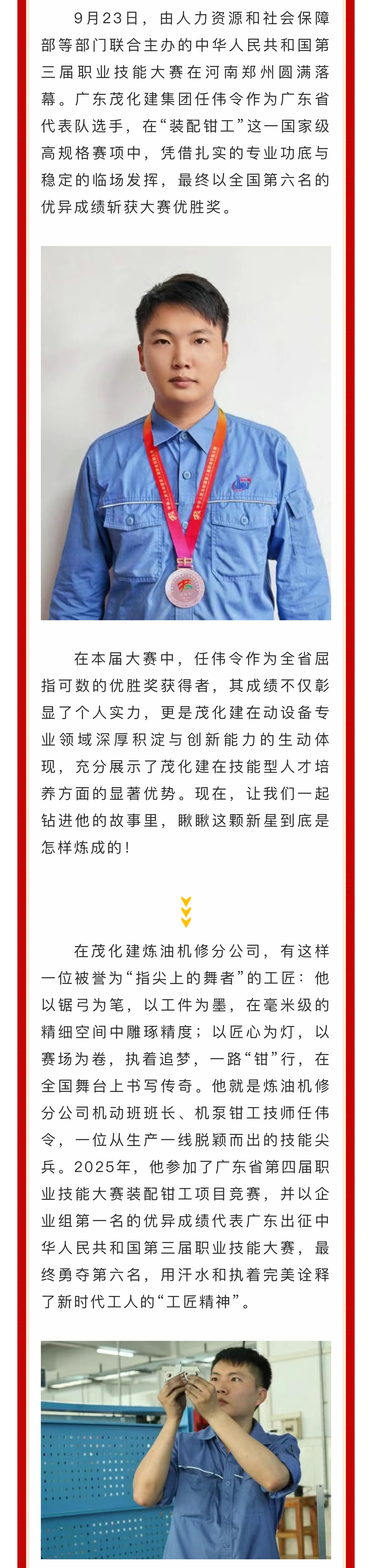 全国第六!广东茂化建集团任伟令斩获第三届全国职业技能大赛优胜奖